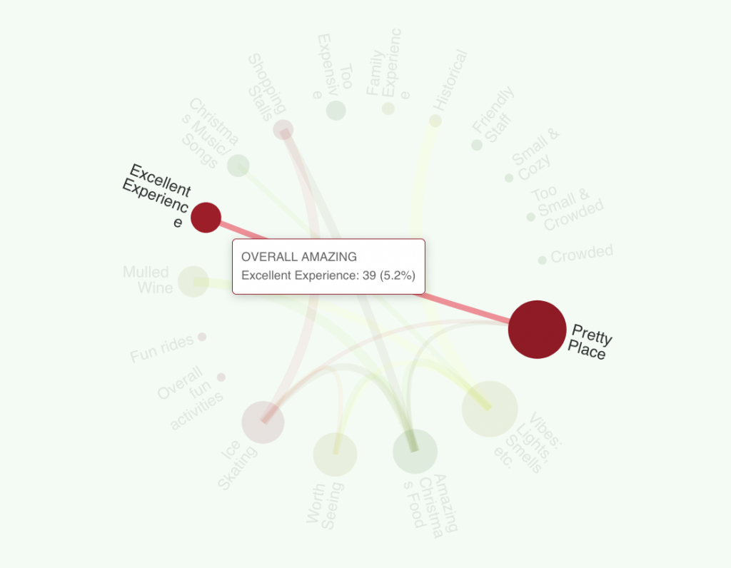 Perfecting the Christmas Marketsâ Spirit is a scientific process. Have you ever been to an amazing Christmas market that only had one good thing? Us neither. At Caplena, we contend that the key to that jolly feeling of love and togetherness is a blend of various topics. A mix alone, however, isnât enough. The more the ingredients are balanced, the better! Using the Treemap, we can see the derived topics and their balance within our scientific recipe.