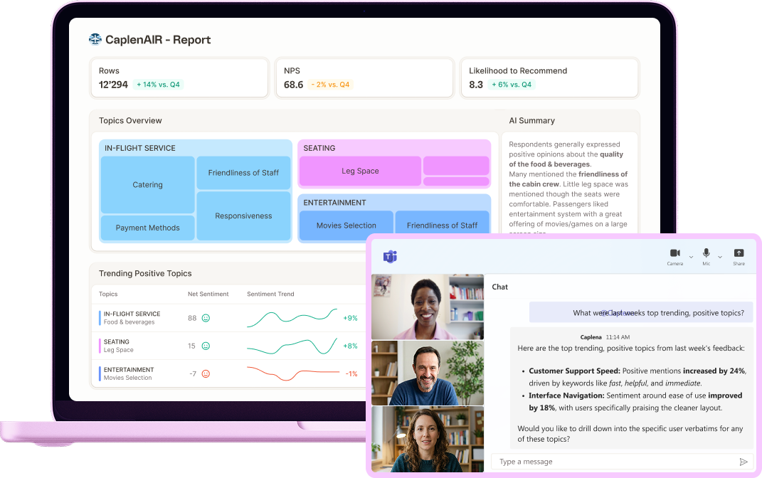 For teams that want to automate data flows or build Caplena into a custom stack, the Caplena REST API lets you push data in from any source programmatically (in real time for live use cases, or in bulk for offline workflows).